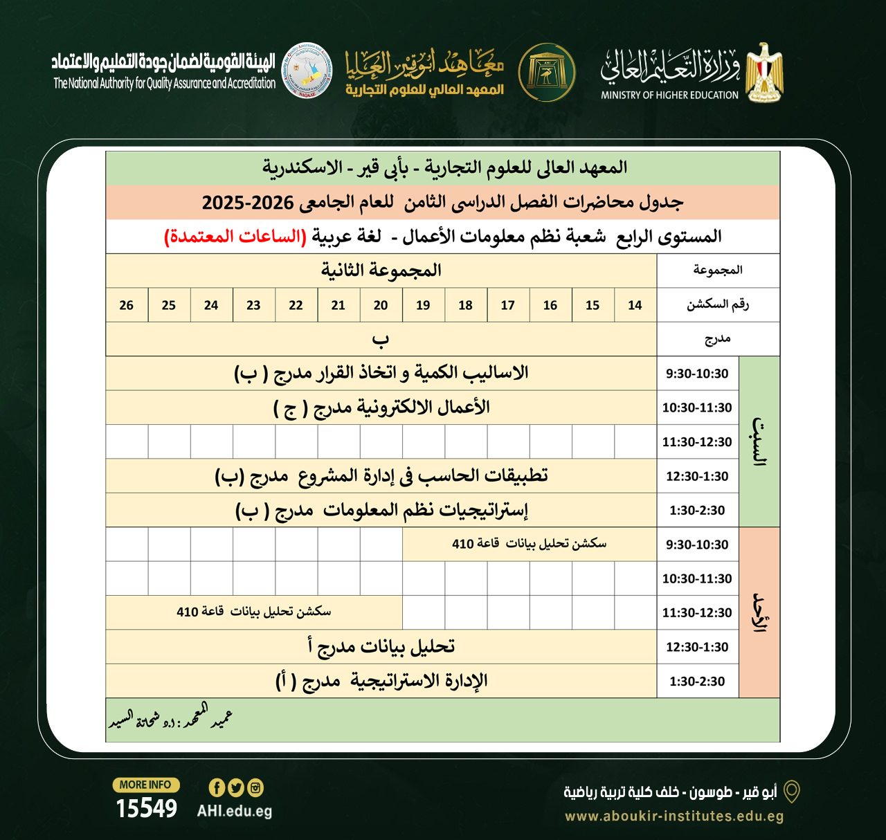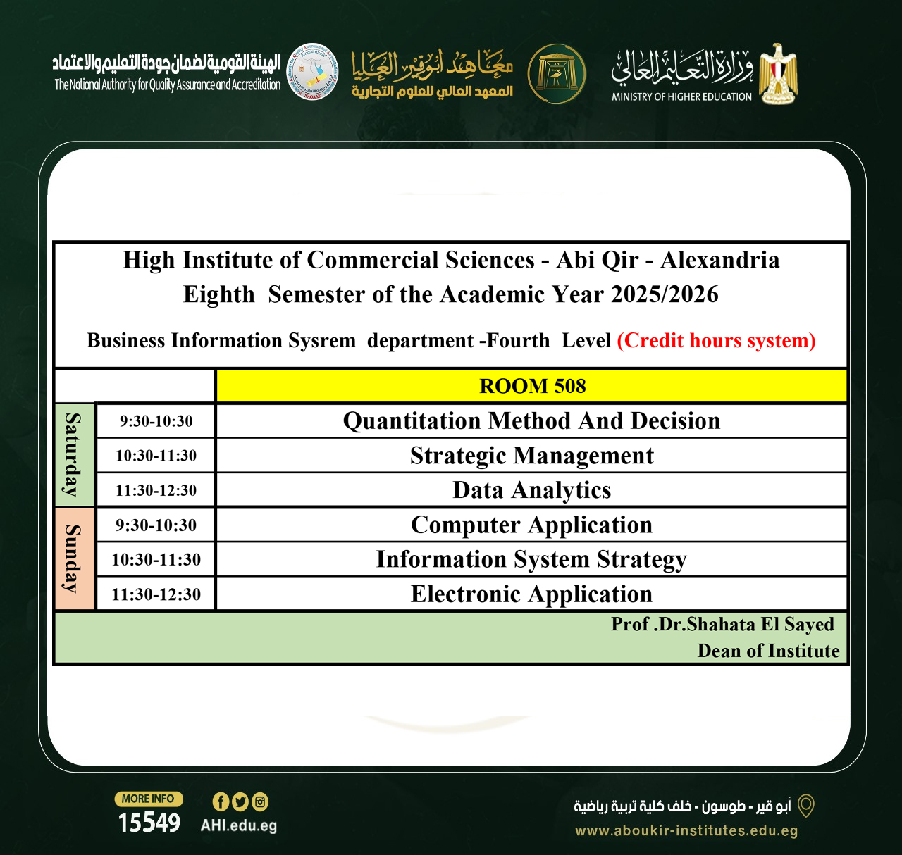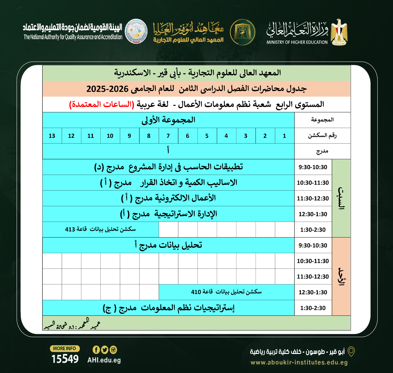 - بكالوريوس تجارة نظم معلومات الأعمال( باللغة العربية / باللغة الإنجليزية )
