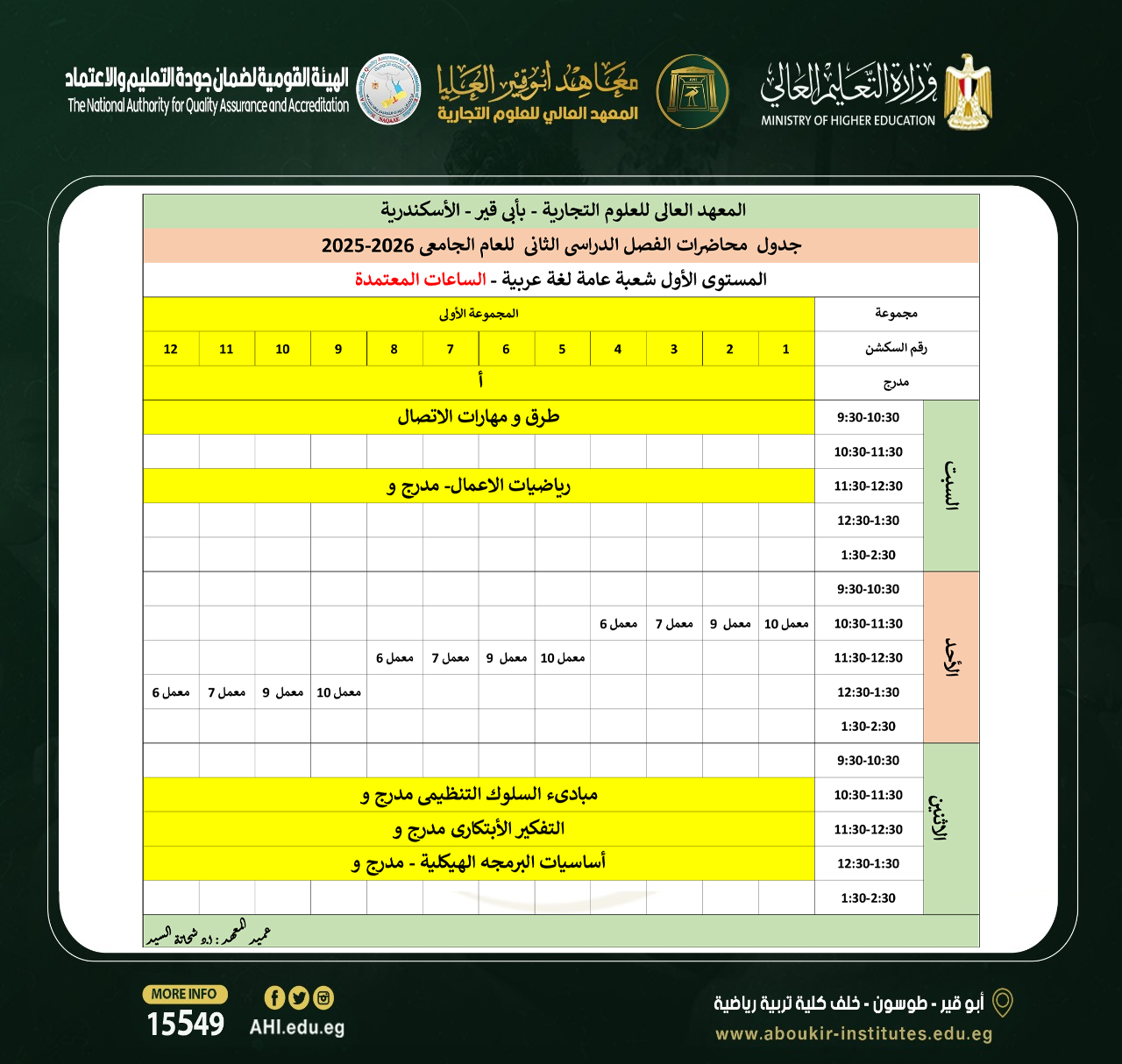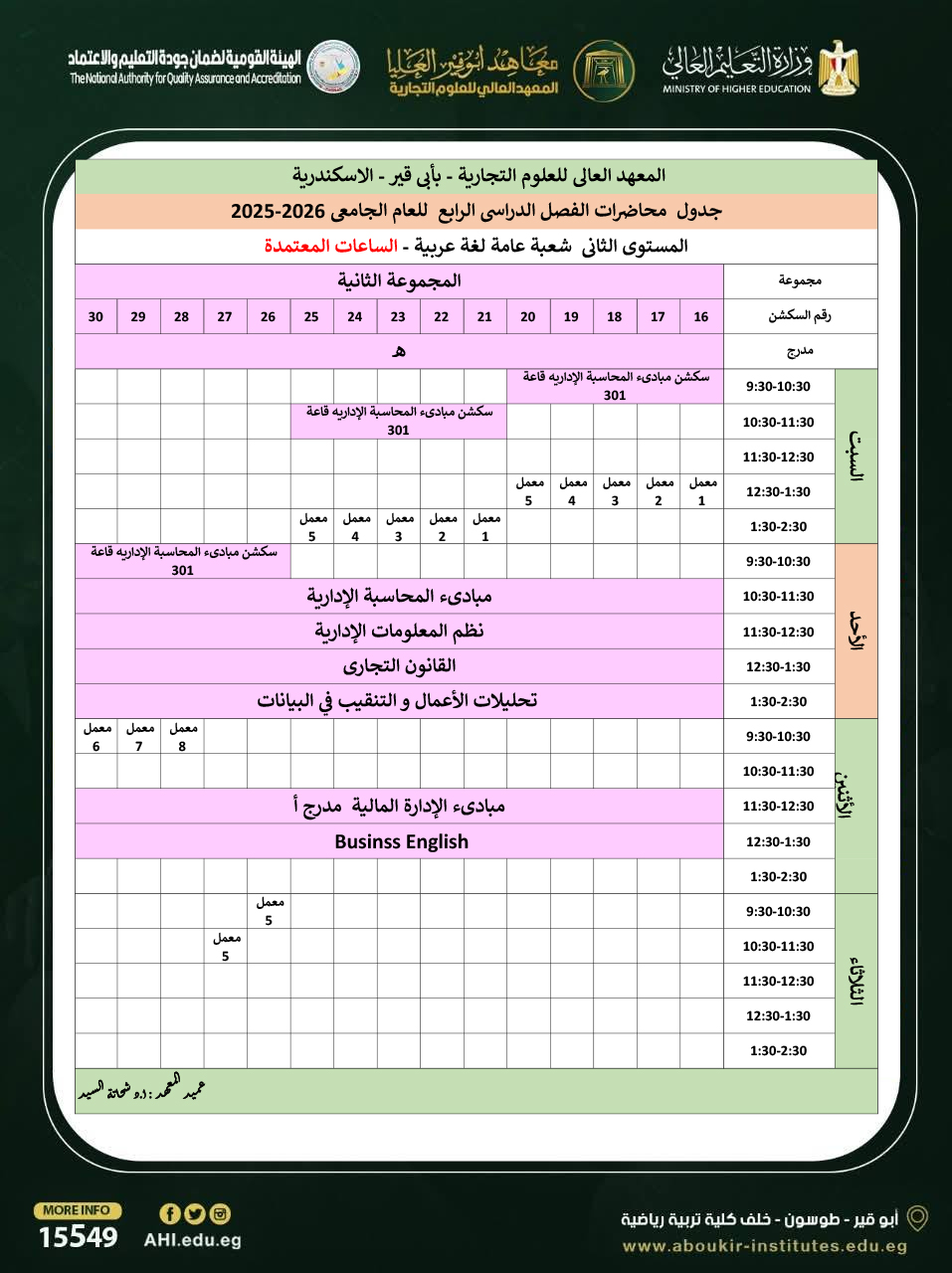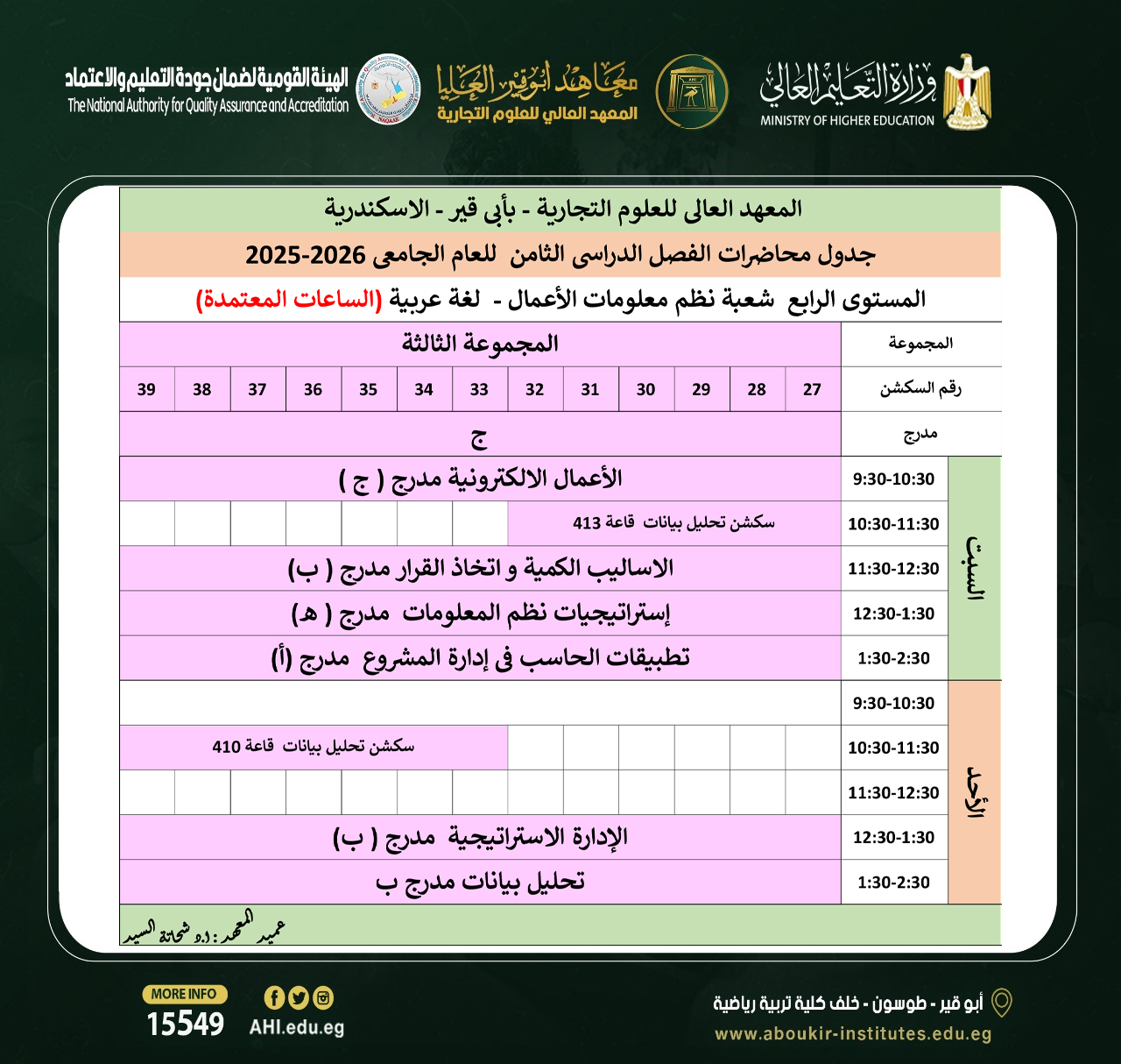 - بكالوريوس تجارة نظم معلومات الأعمال( باللغة العربية / باللغة الإنجليزية )
