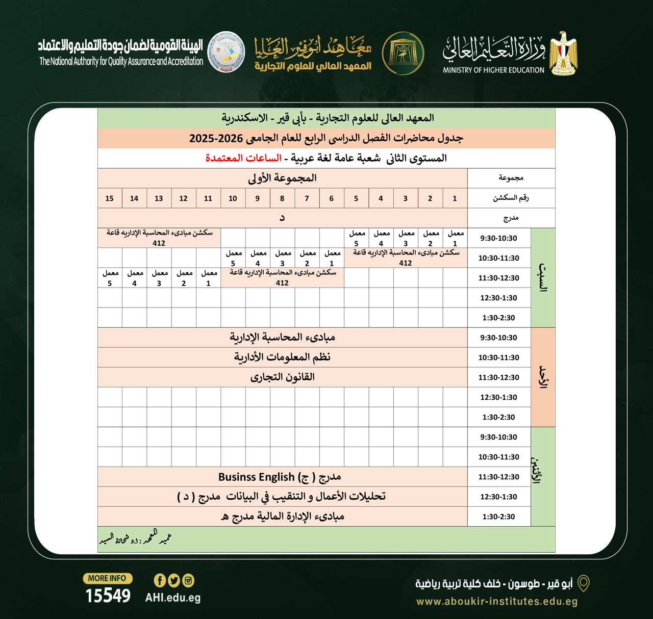 | الفرقة / البرنامج | برنامج نظم المعلومات الادارية باللغة العربية(لائحة قديمة) | نظم المعلومات الادارية باللغة الانجليزية (لائحة قديمة) | نظم معلومات الاعمال باللغة العربية (لائحة جديدة) | نظم معلومات الاعمال باللغة الانجليزية (لائحة جديدة) |