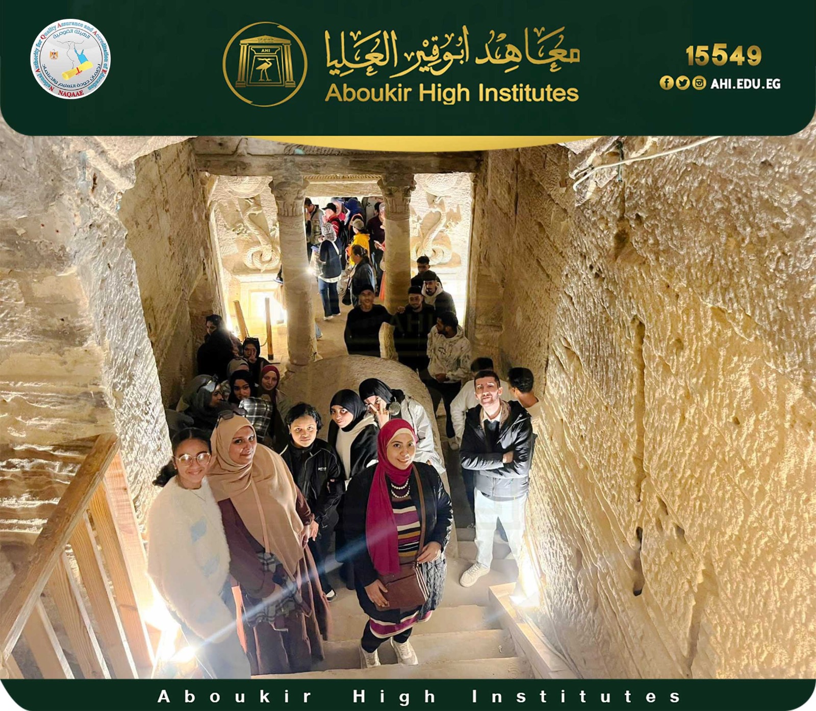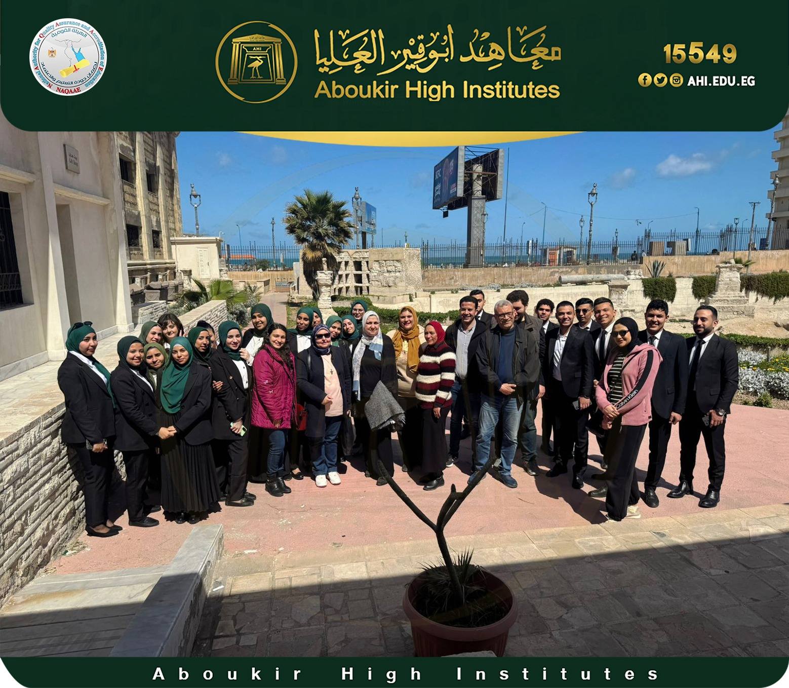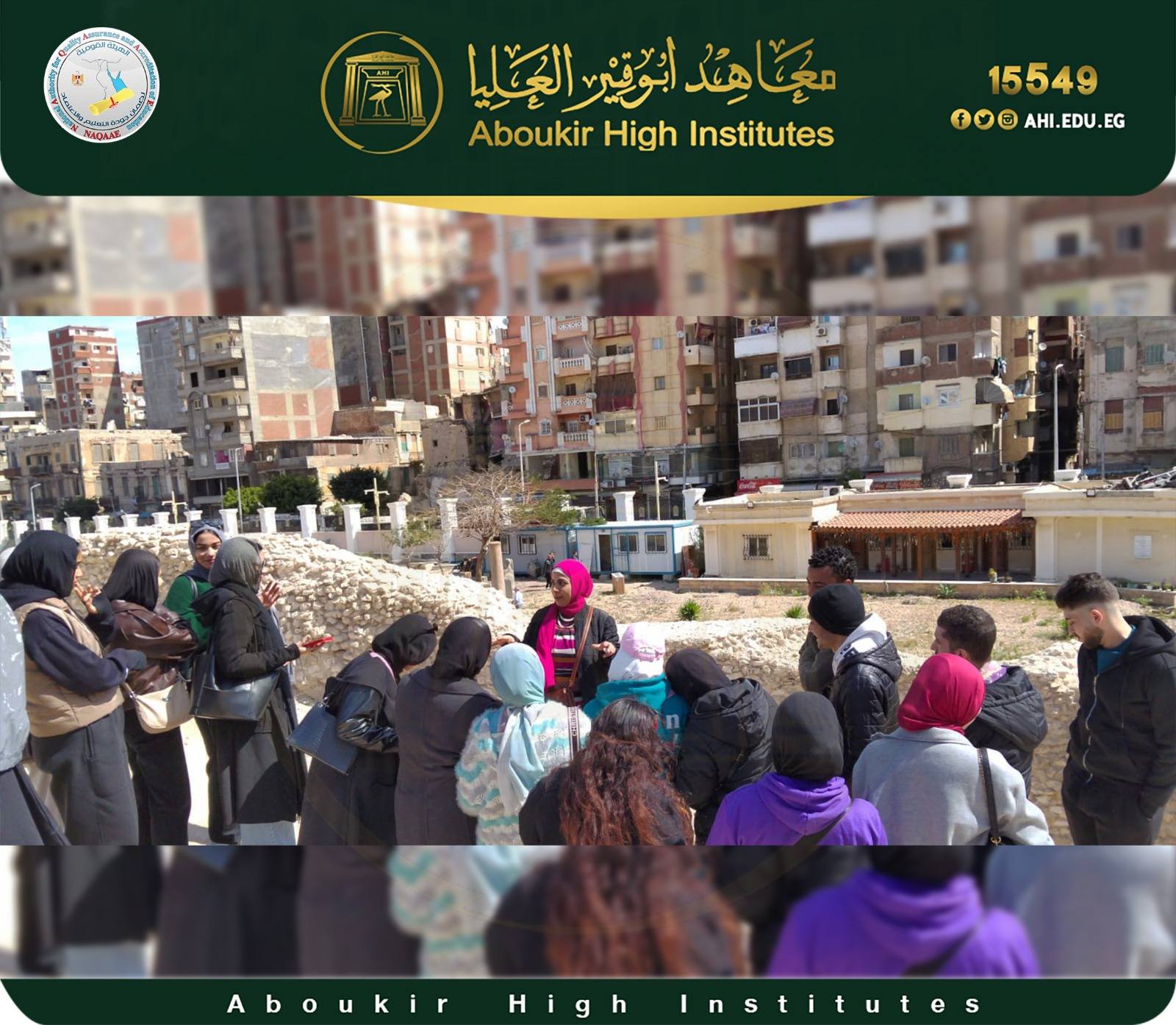 تحت رعاية ودعم مجلس ادارة معاهد ابو قير العليا، والاستاذ الدكتور/ خالد بسيوني - عميد المعهد العالي للسياحة والفنادق وترميم الآثار ورياده ا.د / رانيا عرابي وكيل المعهد لشئون التعليم والطلاب - وفي اطار خطة الزيارات الميدانية لطلاب المستوى الثاني - قسم ترميم الآثار والمقتنيات الفنية، نظم القسم زيارة علمية للمسرح الروماني وذلك وفق مقرر فنون تاريخ وآثار مصر اليونانيه والرومانيه — تاريخ وآثار مصر البيزنطيه–تقنيات وعلاج وصيانة رسوم التمبرا والفريسك – الحرف التراثية، يوم الاحد الموافق ٢٠٢٦/٣/١٥، وذلك تحت اشراف د/ مؤمن عبد القادر - المدرس بقسم ترميم الآثار - وبمعاونة م. م / داليا حسن المدرس المساعد بالقسم