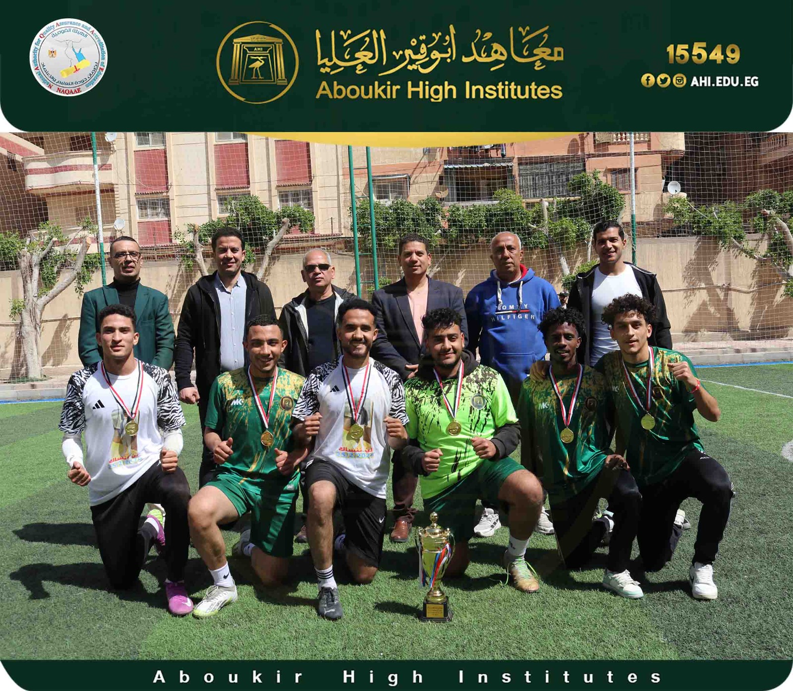 تحت رعاية ودعم مجلس إداره معاهد ابو قير العليا – و أ.د. خالد بسيوني عميد المعهد العالي للسياحة والفنادق وترميم الآثار، ورياده ا.د. رانيا عرابى وكيل المعهد لشئون التعليم والطلاب، وتحت إشراف دكتور حسن منصور رئيس اللجنه الرياضيه وبالتعاون مع قسم رعايه الشباب بالمعهد، تم الإنتهاء من فعاليات الدورة الرمضانية لكرة القدم بمشاركة 16 فريق من أقسام (ترميم الآثار،الدراسات السياحية، وإدارة الضيافة، الارشادالسياحى). وفى الختام تم نهائى البطوله (بفوز فريق الأصدقاء بنتيجه 1/3 ضد فريق المدفعجيه) وذلك يوم الأربعاء الموافق 2026/3/4. وقبل بدايه المباراه تم الوقوف دقيقه حداد على روح الطالب أحمد السوداني، المقيد بالفرقة الدراسية الثالثة – شعبة إدارة الضيافة، والذي انتقلت روحه إلى بارئها شهر فبراير الماضي.